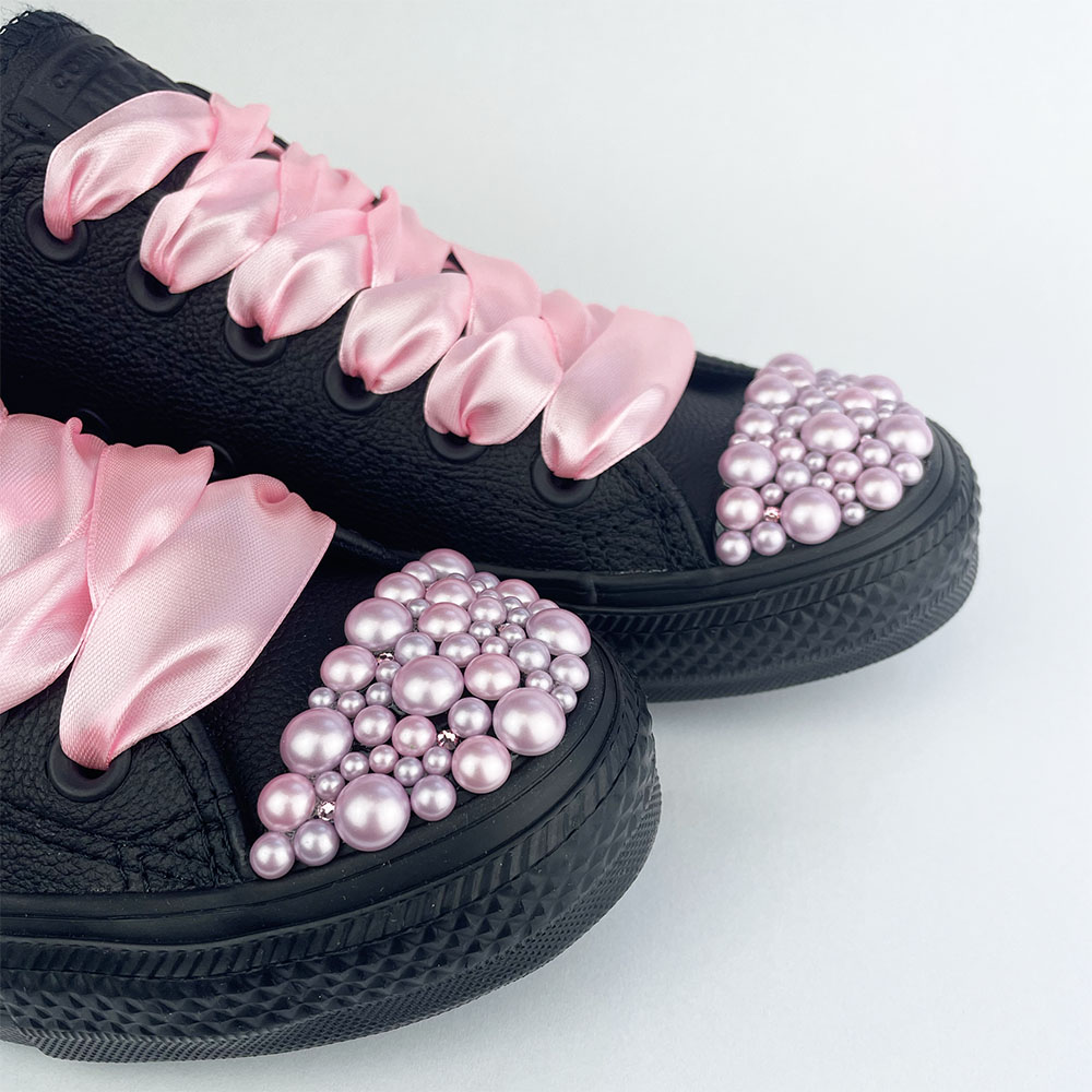 Ezeknek a szeretett tornacipőknek a soha véget nem érő, soha nem öregedő dizájnját most egy exkluzív, rózsaszín viaszgyöngyökkel díszített kivitelben kínáljuk.